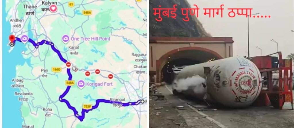 рдорд╣рд╛рдорд╛рд░реНрдЧрд╛рд╡рд░реАрд▓ рдмреЛрдЯрдШрд╛рдЯ рдЯреЕрдм рд╣рджреНрджреАрдд рдордВрдЧрд│рд╡рд╛рд░реА рд╕рд╛рдпрдВрдХрд╛рд│реА рем рдЪреНрдпрд╛ рд╕реБрдорд╛рд░рд╛рд╕ рдЧреЕрд╕ рдЯрдБрдХрд░ рдЙрд▓рдЯрд▓рд╛. рддреНрдпрд╛рддреВрди рдЬреНрд╡рд▓рдирд╢реАрд▓ рдкреНрд░реЛрдкреЛрд▓рд┐рди рдЧреЕрд╕рдЪреА рдореЛрдареА рдЧрд│рддреА рдЭрд╛рд▓реА. рдЧреЕрд╕ рдЧрд│рддреАрдореБрд│реЗ рд╕реБрд░рдХреНрд╖реЗрдЪрд╛ рдкреНрд░рд╢реНрди рдирд┐рд░реНрдорд╛рдг рдЭрд╛рд▓реНрдпрд╛рдиреЗ рдПрдордПрд╕рдЖрд░рдбреАрд╕реАрдиреЗ рдкреБрдгреНрдпрд╛рд╣реВрди рдореБрдВрдмрдИрдХрдбреЗ рдЬрд╛рдгрд╛рд░реА рд╡рд╛рд╣рд┐рдиреА рдкреВрд░реНрдгрдд: рд╡рд╛рд╣рддреБрдХреАрд╕рд╛рдареА рдмрдВрдж рдХреЗрд▓реА. рдХрд╛рд╣реА рд╡реЗрд│рд╛рдиреЗ рдореБрдВрдмрдИрд╣реВрди рдкреБрдгреНрдпрд╛рдХрдбреЗ рдЬрд╛рдгрд╛рд▒реНрдпрд╛ рдорд╛рд░реНрдЧрд┐рдХреЗрд╡рд░реВрди рд╕рдВрдердЧрддреАрдиреЗ рд╡рд╛рд╣рддреВрдХ рд╕реБрд░реВ рд╣реЛрддреА. рдорд╣рд╛рдорд╛рд░реНрдЧрд╛рд╡рд░ реирел рдХрд┐рдореАрдЪреНрдпрд╛ рд░рд╛рдВрдЧрд╛ рд▓рд╛рдЧрд▓реНрдпрд╛ рд╣реЛрддреНрдпрд╛. рдорд╛рддреНрд░ рддреНрдпрд╛рдирдВрддрд░ рдЙрд╢рд┐рд░рд╛ рд╡рд╛рд╣рддреВрдХ рдЬреБрдиреНрдпрд╛ рдореБрдВрдмрдИ-рдкреБрдгреЗ рдорд╣рд╛рдорд╛рд░реНрдЧрд╛рд╕рд╣ рдЗрддрд░ рдкрд░реНрдпрд╛рдпреА рдорд╛рд░реНрдЧрд╛рдиреЗ рд╡рд│рд╡реВрди рдорд╣рд╛рдорд╛рд░реНрдЧ рдкреВрд░реНрдгрдд: рдмрдВрдж рдХрд░рдгреНрдпрд╛рдд рдЖрд▓реНрдпрд╛рдЪреА.